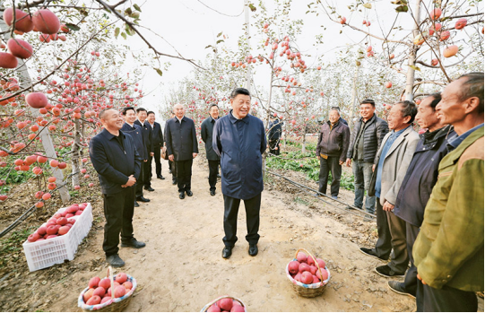 2022年10月26日至28日,中共中央总书记、国家主席、中央军委主席习近平在陕西省延安市、河南省安阳市考察。这是26日下午,习近平在延安市安塞区高桥镇南沟村苹果园同老乡们亲切交流。 新华社记者 鞠鹏/摄 全面贯彻党的二十大精神,为实现党的二十大确定的目标任务而团结奋斗,是新一届中央领导集体的重大政治任务。当前和今后一个时期,我们要着重做好以下几方面工作。 **,深刻认识我国发展面临的形势,始终保持战略清醒。正确判断形势,是谋划未来、科学决策的重要前提。新时代新征程,我国发展面临新的战略机遇、新的战略任务、新的战略阶段、新的战略要求、新的战略环境。经过长期艰苦奋斗特别是新时代10年的奋力拼搏,我们党领导人民如期全面建成小康社会、实现**个百年奋斗目标,迈上全面建设社会主义现代化国家新征程,向第二个百年奋斗目标进军。走过百年奋斗历程的中国共产党在革命性锻造中更加坚强有力,中国人民的前进动力更加强大、奋斗精神更加昂扬、必胜信念更加坚定,我国发展具备了更为坚实的物质基础、更为完善的制度保证、更为主动的精神力量,实现中华民族伟大复兴进入了不可逆转的历史进程,中国特色社会主义展现出蓬勃生机。同时,也要清醒认识到,当前,世界百年未有之大变局加速演进,世纪疫情影响深远,逆全球化思潮抬头,单边主义、保护主义明显上升,世界经济复苏乏力,局部冲突和动荡频发,全球性问题加剧,世界进入新的动荡变革期,来自外部的风险挑战始终存在并日益凸显。我国改革发展稳定面临不少深层次矛盾躲不开、绕不过,党的建设特别是党风廉政建设和反腐败斗争面临不少顽固性、多发性问题。我国发展进入战略机遇和风险挑战并存、不确定难预料因素增多的时期,各种“黑天鹅”、“灰犀牛”事件随时可能发生,需要应对的风险挑战、防范化解的矛盾问题比以往更加严峻复杂。全党既要坚定战略自信、保持必胜信念,又要增强忧患意识、坚持底线思维,准备经受风高浪急甚至惊涛骇浪的重大考验,继续披荆斩棘、勇毅前行,奋力开创事业发展新局面。